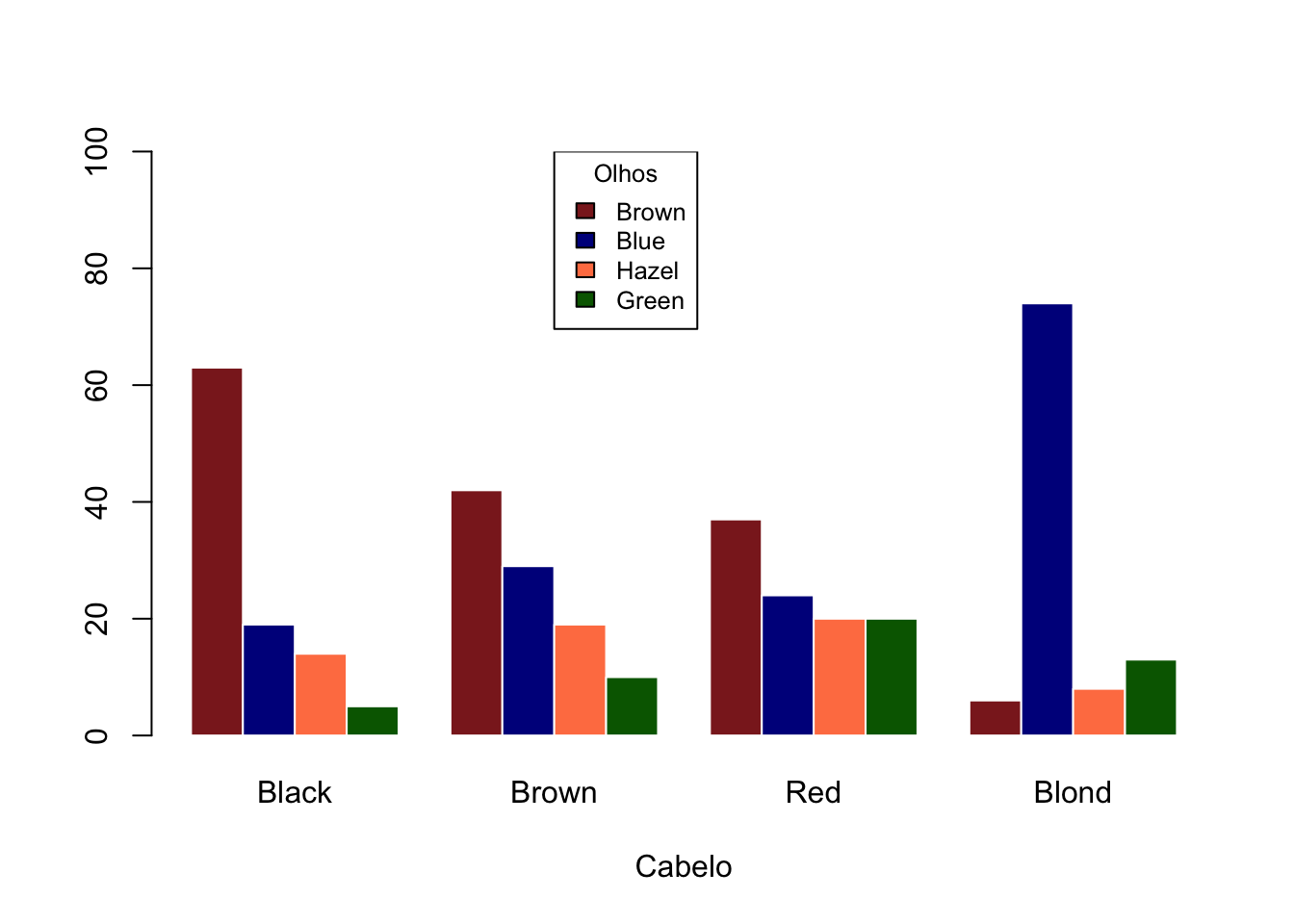 Exemplo com os dados HairEyeColor.