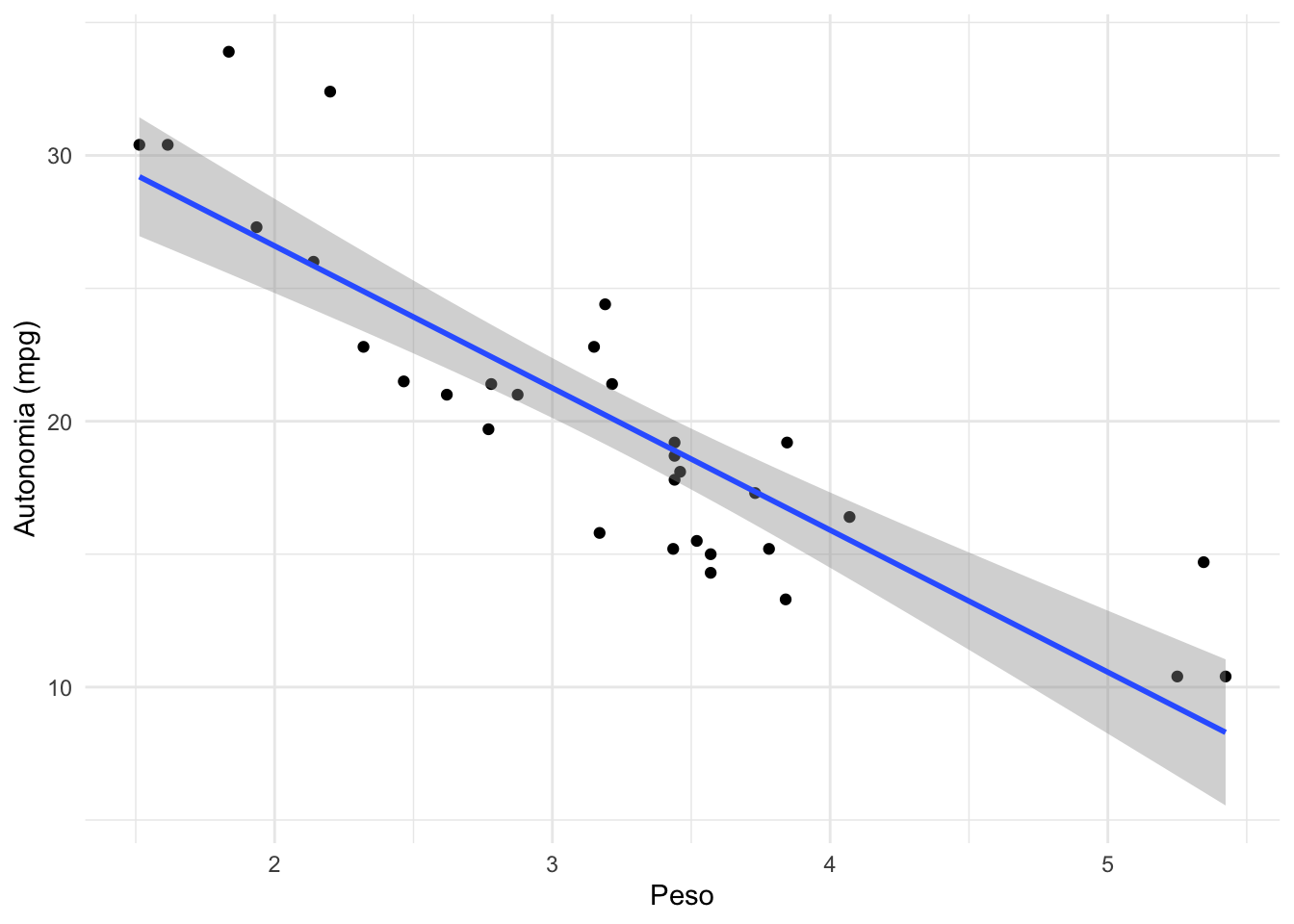 labs(title = "", y = "Autonomia prevista (mpg)", x = "Peso") +